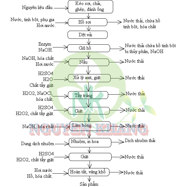 - Nguồn nước thải bao gồm từ các công đoạn chuẩn bị sợi, chuẩn bị vải, nhuộm và hoàn tất.