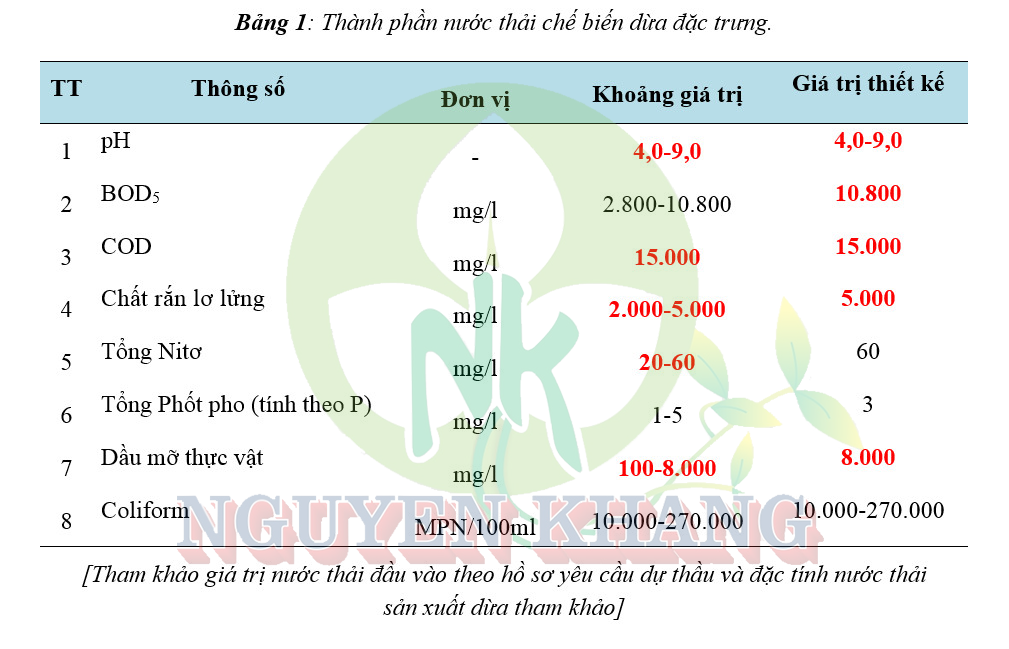 Nước thải của ngành dừa chủ yếu từ các nhà máy sản xuất có nguồn nguyên liệu là cơm dừa như nhà máy sản xuất cơm dừa nạo sấy, bột cốt dừa, tinh dầu dừa, sữa dừa với lượng nước thải ra có hàm lượng dầu cao, gây rất nhiều trở ngại trong việc xử lý nước thải đạt tiêu chuẩn cho phép thải ra môi trường.